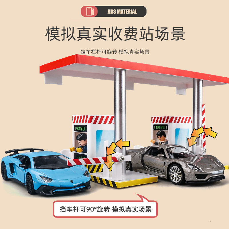 卡威收费站加油站模型男孩小汽车玩具组合儿童宝宝车模配件