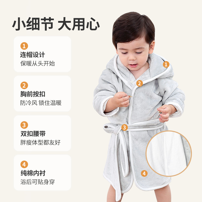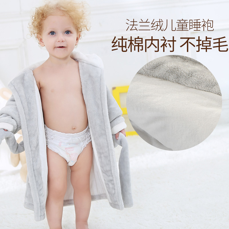 宝宝浴袍珊瑚绒男童睡袍冬季 婴儿家居服 加厚法兰绒儿童睡衣秋冬款