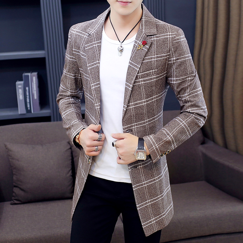 过膝无羊绒呢子风衣外套韩版 毛呢大衣男中长款 宽松落肩 新款 秋冬季