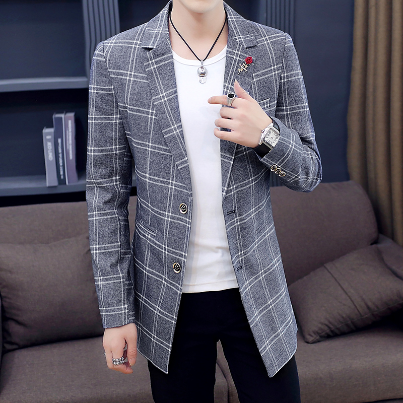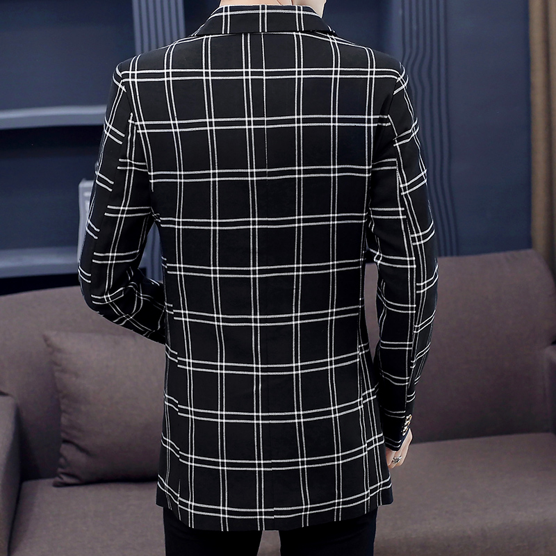韩版 长款 呢子加厚风衣外套 2025春秋季 V37黑色高级感毛呢大衣男款