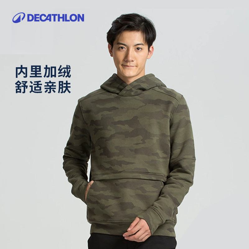 迪卡侬官方运动卫衣男女秋冬长袖 情侣宽松迷彩加绒OVHU 加厚套头衫