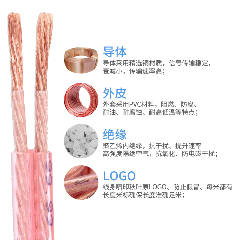 秋叶原音响线铜芯音箱线环绕喇叭线汽车改装 低音炮功放音频连接线