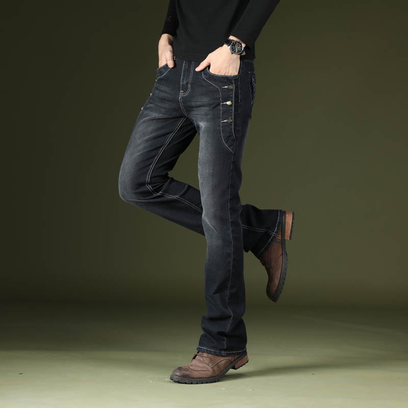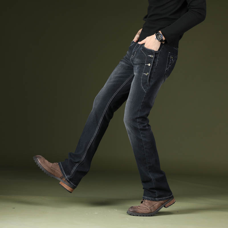 休闲长裤 HLA海澜之家水洗直筒黑色猫须牛仔裤 大码 新款 子男 春秋季