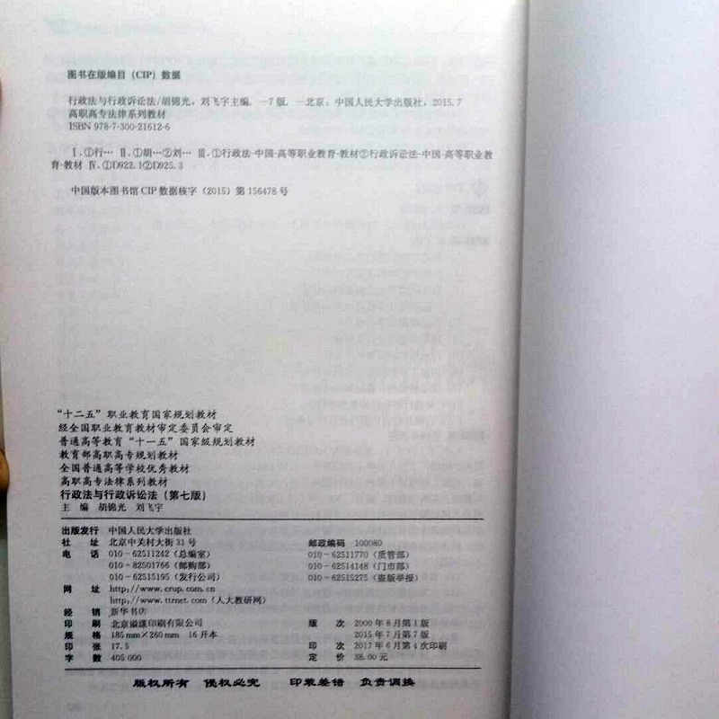 经全国职业教育教材审定委员会审定 胡锦光 刘飞宇 正版 中国人民大学出版 第七版 著 社 行政法与行政诉讼法