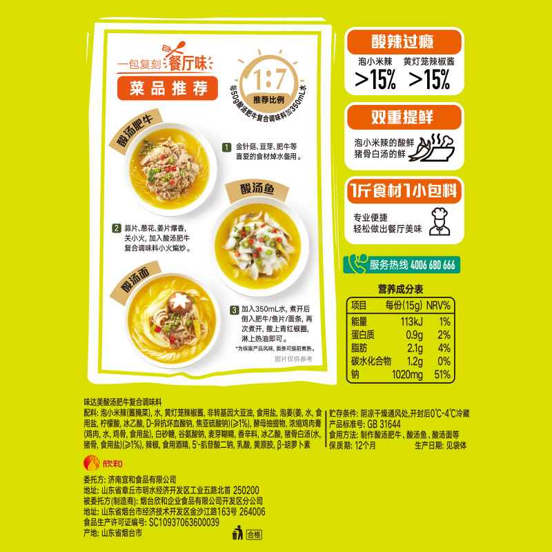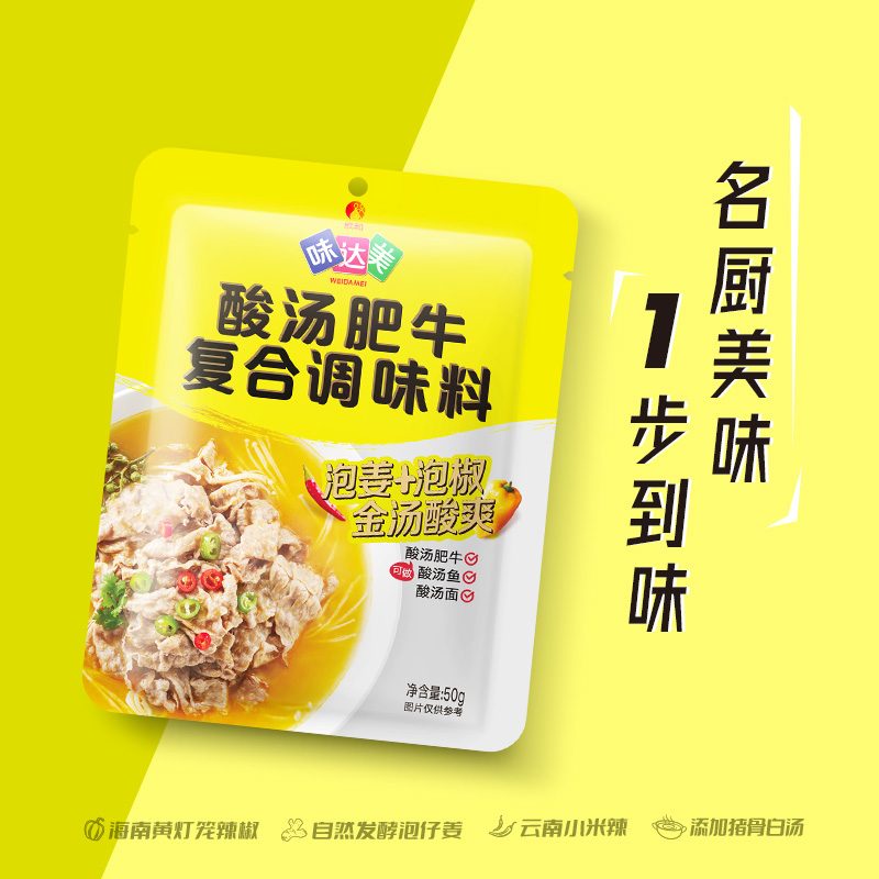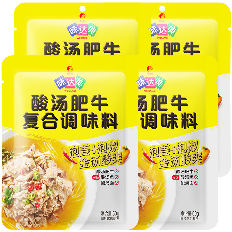 欣和味达美酸汤肥牛调料50g 正宗酸辣金汤酸汤酱便捷小包家用 4袋