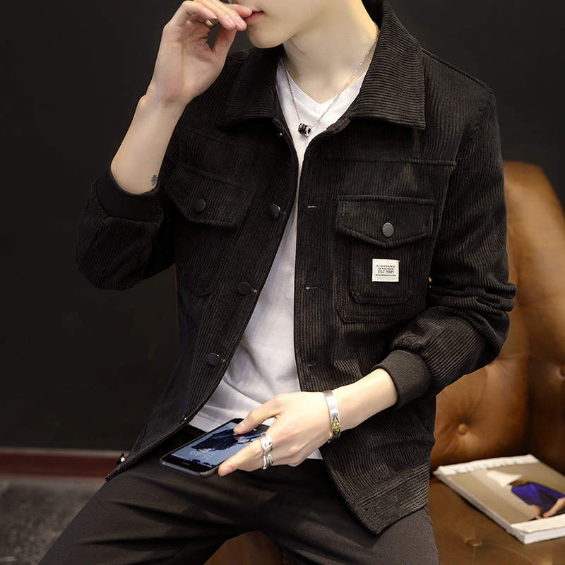 翻领衣服男装 帅气潮流修身 韩版 2025春秋外套男牛仔夹克灯芯绒男士