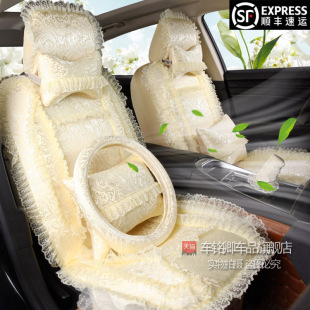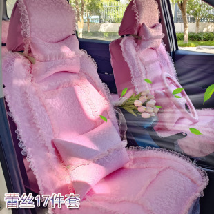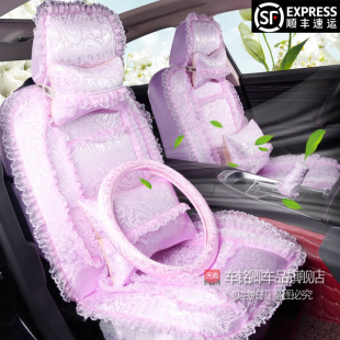 汽车座套四季 女士专用紫色布艺车套 可爱全包粉色蕾丝坐新款