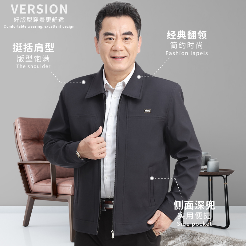 夹克衫 中年男装 70岁老人外衣服 夹克男春秋款 爸爸外套中老年人秋装