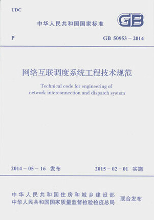 2014 网络互连调度系统工程技术规范 含条文说明 正版 计划出版 50953 用于网络互联调度系统新建扩建改建工程设计施工及验收 社