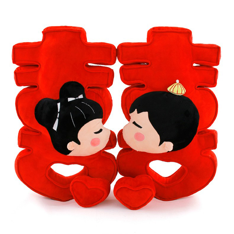 婚庆压床娃娃一对大红色双喜字床上抱枕靠垫结婚情侣毛绒玩具礼物