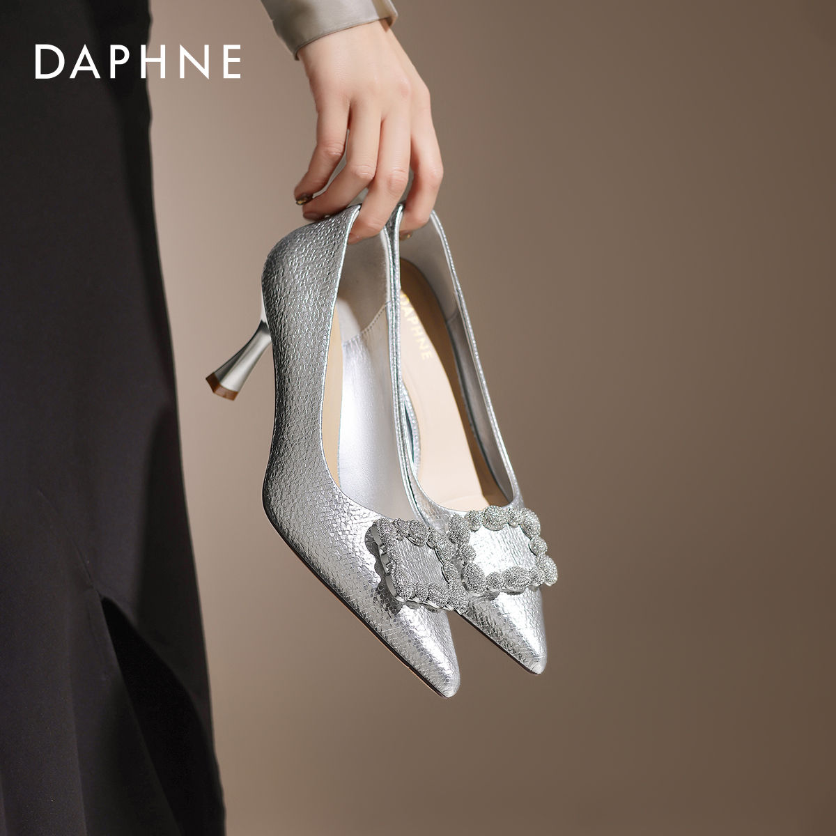 伴娘礼服秀禾婚鞋 达芙妮高跟鞋 细跟女鞋 女2025新款 女银色尖头单鞋