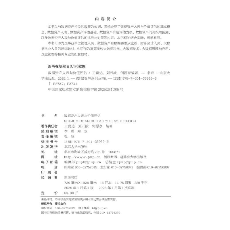 王竞达 刘云波 何源泉 正版 北京大学出版 数据资产入表与价值评估 数据资产系列丛书 社9787301359396 2025新书
