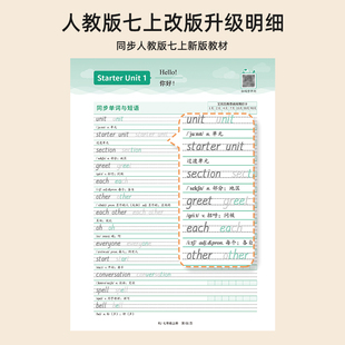 满分书写同步 新版 25新人教版 初中英语字帖初中生衡水体专用七八九年级上下册练字帖七年级英文听写本默写本单词短语句子描红译林版