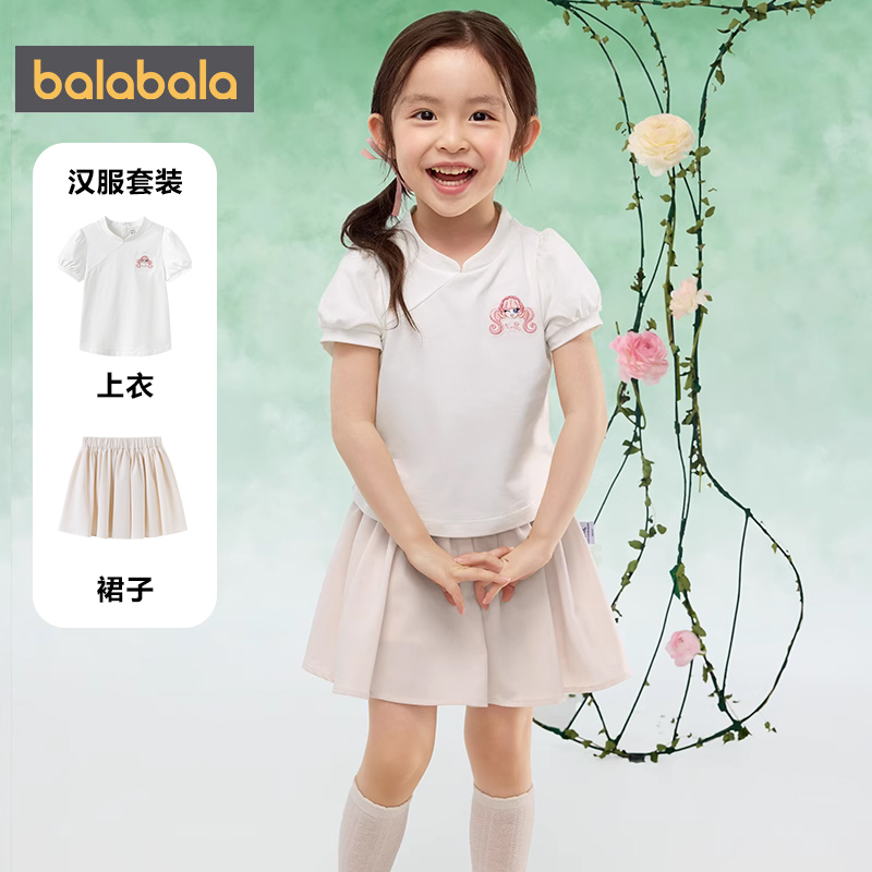 童装 新款 儿童两件套孩 小童宝宝国风裙子夏装 巴拉巴拉女童汉服套装
