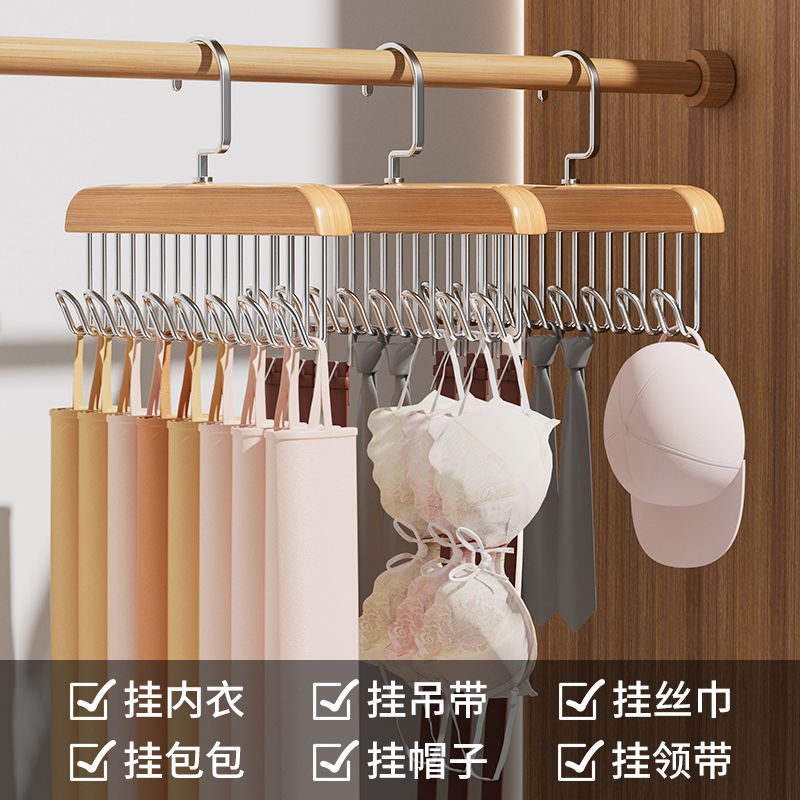 木质吊带衣架多功能内衣内裤 收纳神器家用宿舍实木挂钩波浪晾衣架