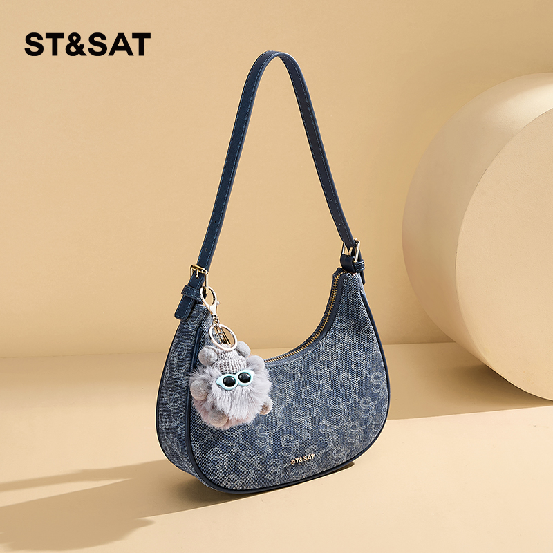 星期六包包女2025新款 单肩斜挎包通勤百搭腋下包高级感印花月牙包