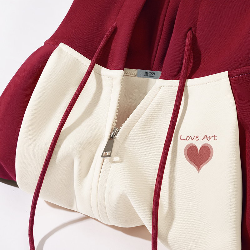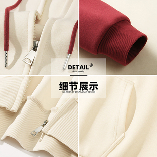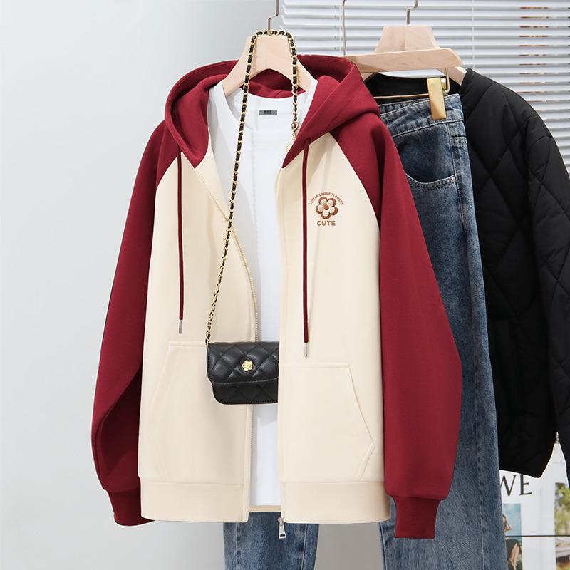 雪中飞卫衣外套女春秋2025新款 中学生宽松上衣PC 女士撞色连帽开衫