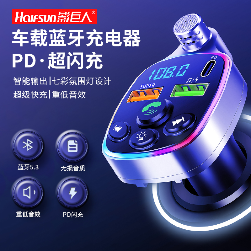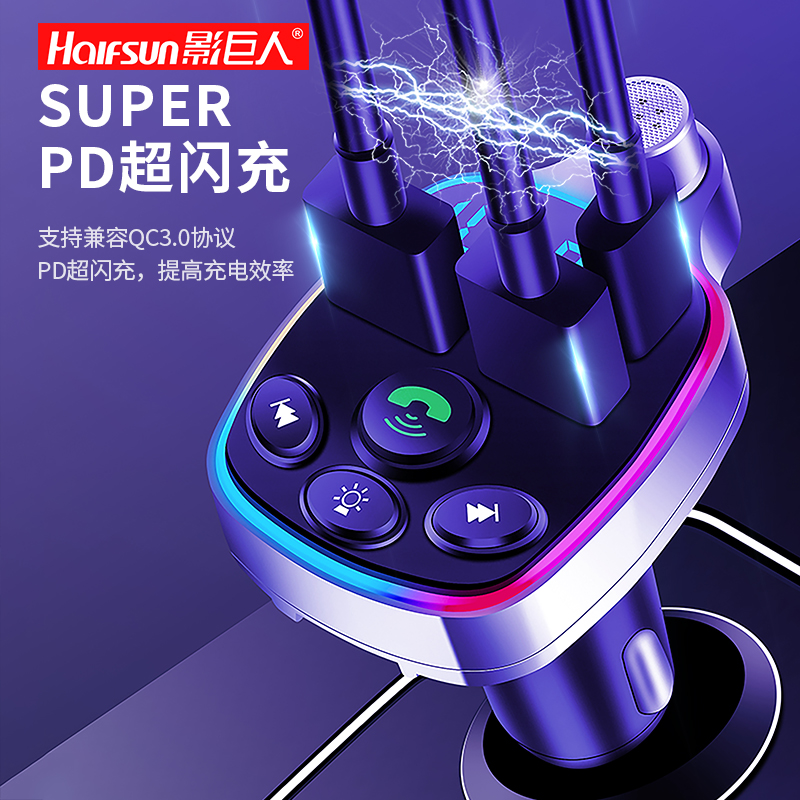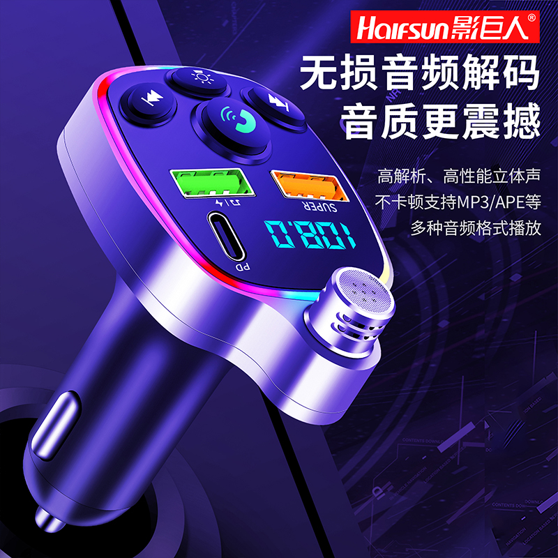 影巨人车载充电器超级闪快充蓝牙MP3接收器听歌播放高音质多功能