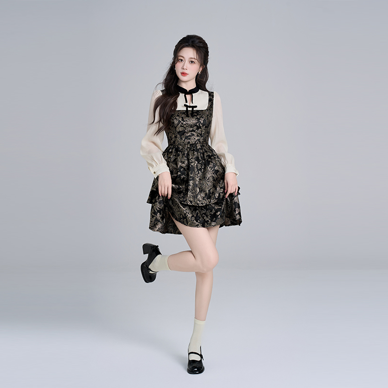 收腰蓬蓬公主a字裙 2025新款 法式 复古宫廷风提花蛋糕连衣裙女春装