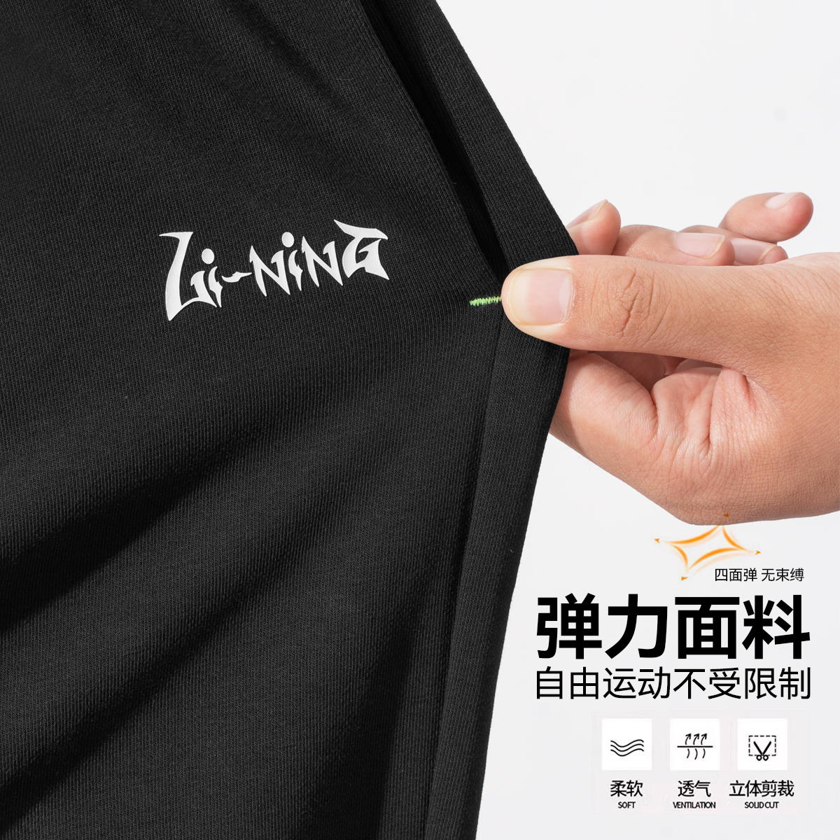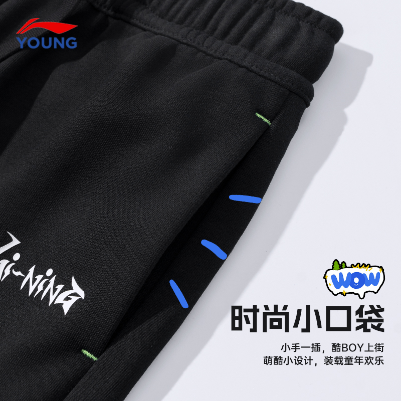 青少年运动裤 李宁男童裤 儿童大童黑色棉质宽松卫裤 新款 子2025秋季
