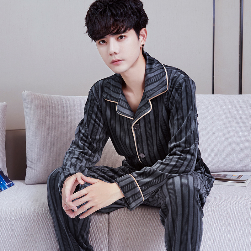 冬天套装 睡衣男士 珊瑚绒加绒加厚保暖法兰绒家居服男款 冬季 秋冬款