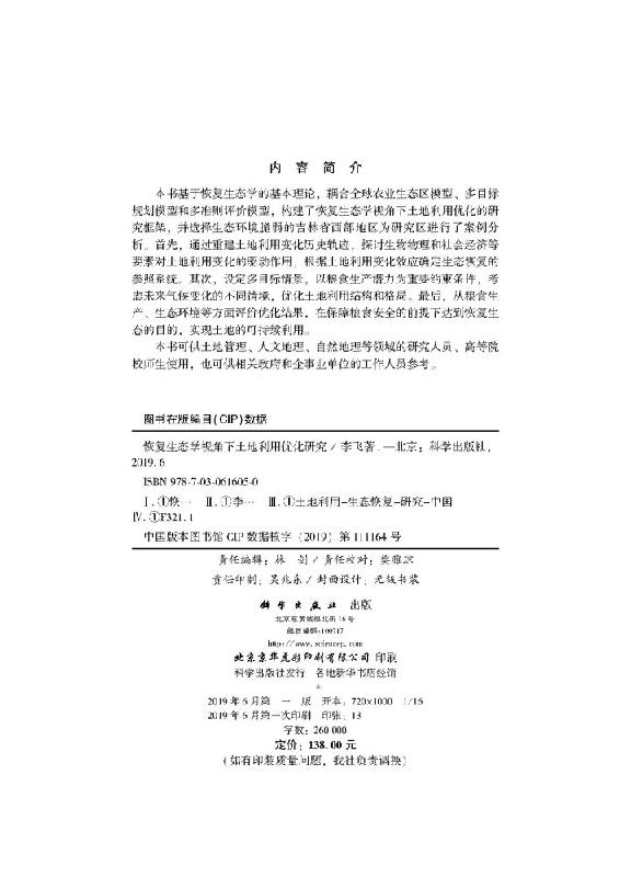 恢复生态学视角下土地利用优化研究