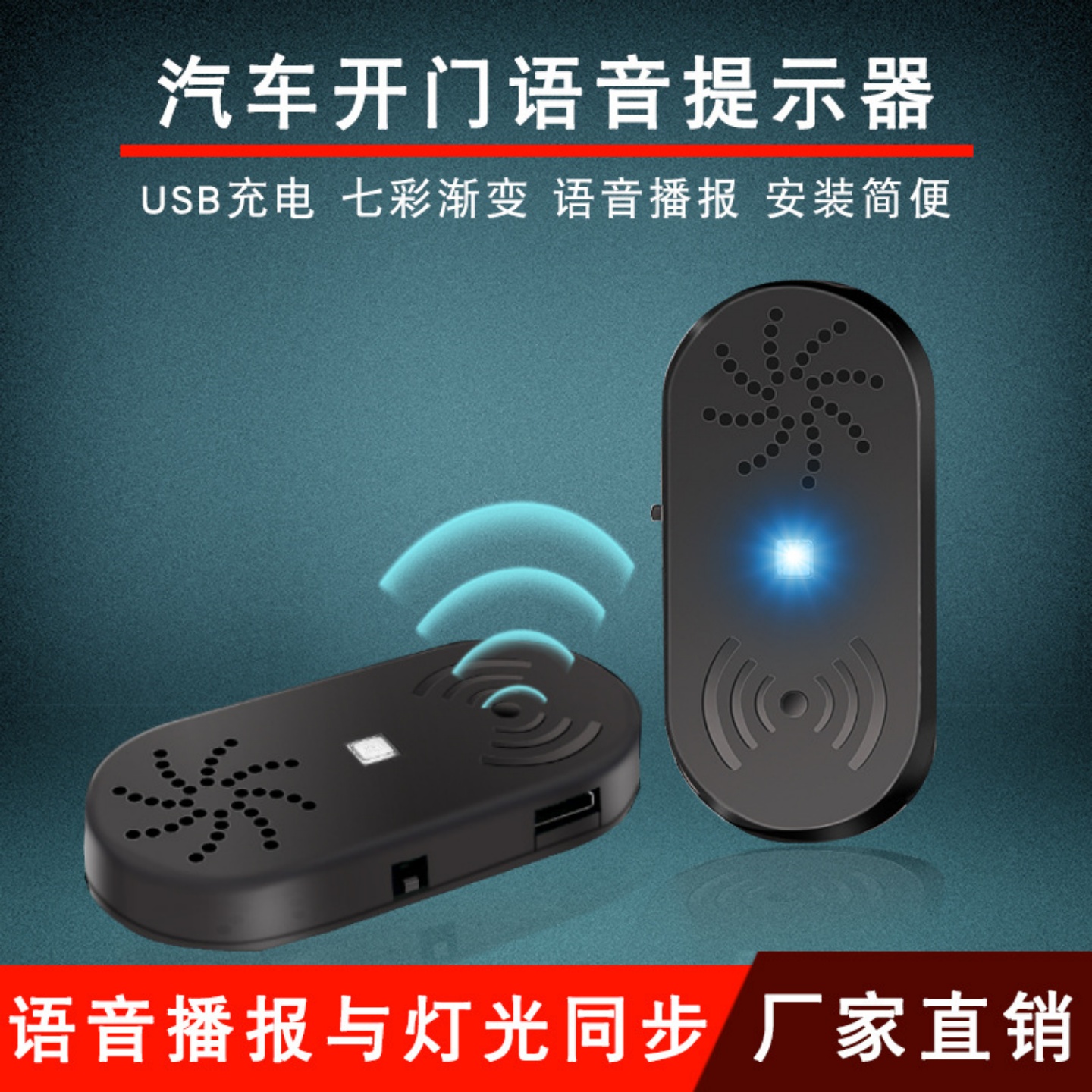 汽车开门提醒器 LED感应提示灯车门防撞 自动车门语音播报警示器