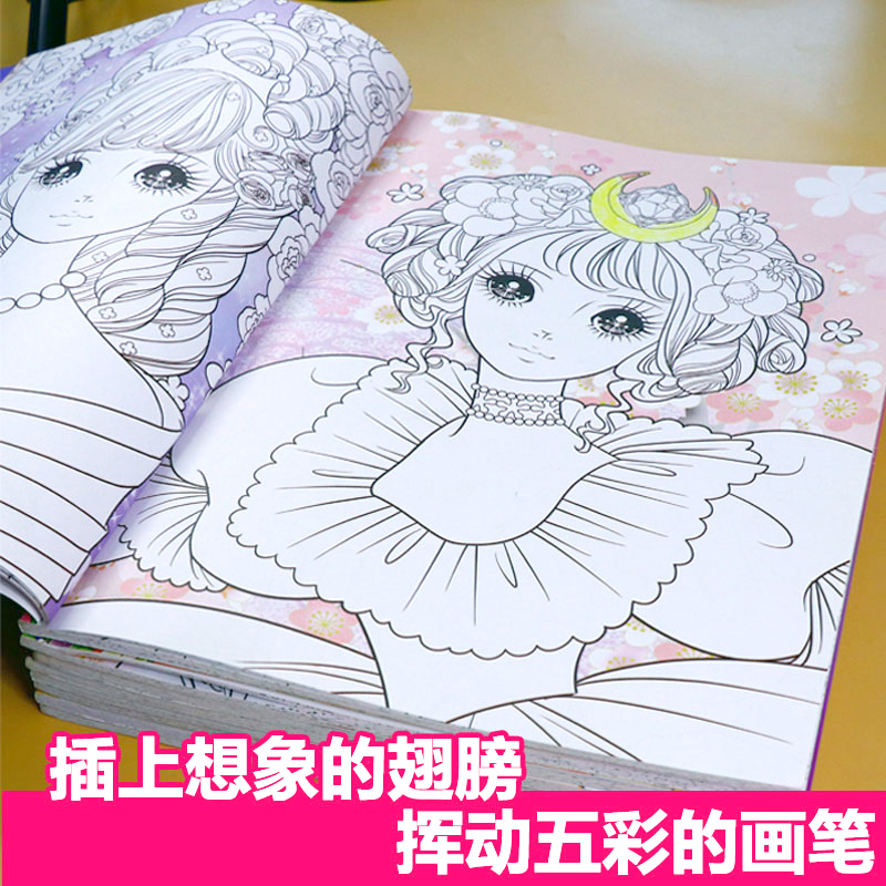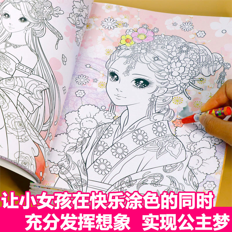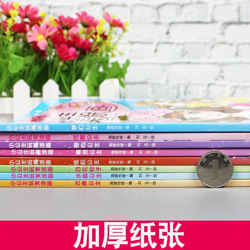 12岁绘画启蒙涂鸦填色本女孩公主儿童入门图画书儿童早教书小公主玩美涂画古典优雅水晶百花精灵炫彩 宝宝学画画涂色书全8册3