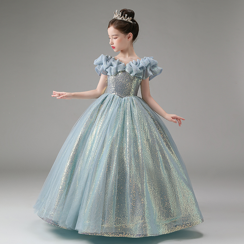 儿童公主裙高端一字肩女童晚礼服生日小女孩钢琴演出服主持人走秀