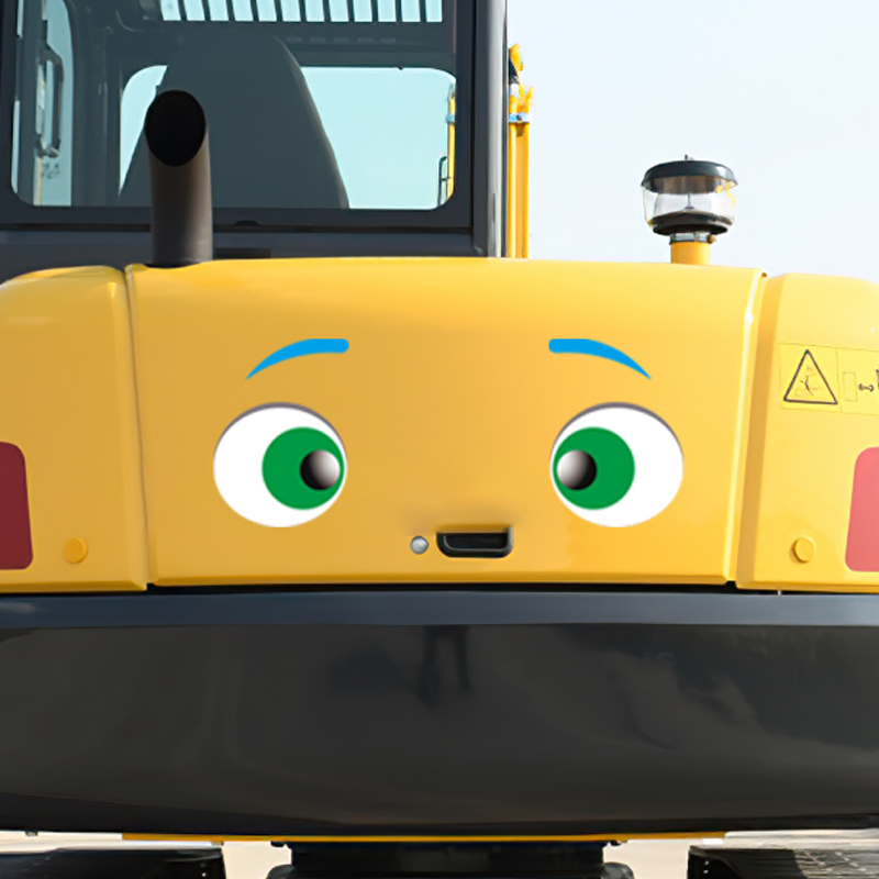 钩机挖机个性 创意卡通恶魔眼睛反光车贴订制黑色挖掘机贴纸贴画