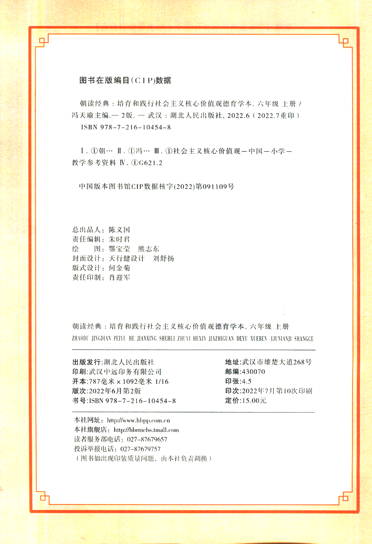 朝读经典 传统文化教育国学经典 六年级上册德育读本 社 教科书6年级上册辅导书少儿文学练习 少儿读物湖北人民教育出版 2022秋新版