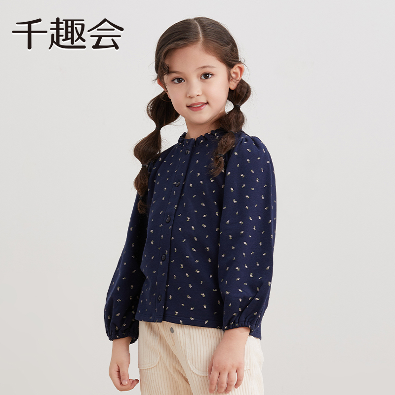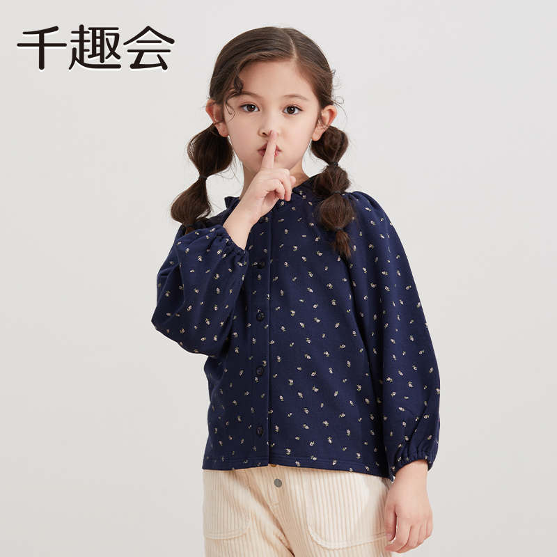 幼儿园宝宝小毛圈布棉质开衫 女童荷叶边领泡泡袖 秋季 千趣会童装
