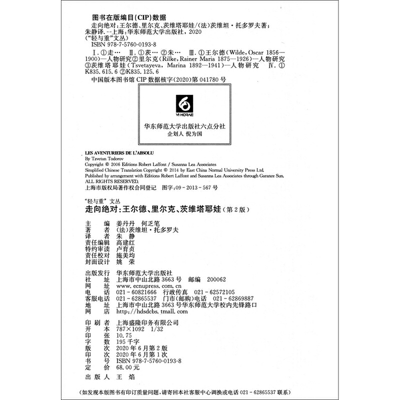 社 书籍 茨维塔耶娃 文丛 茨维坦·托多罗夫 轻与重 里尔克 第2版 正版 当当网 华东师范大学出版 走向绝对:王尔德