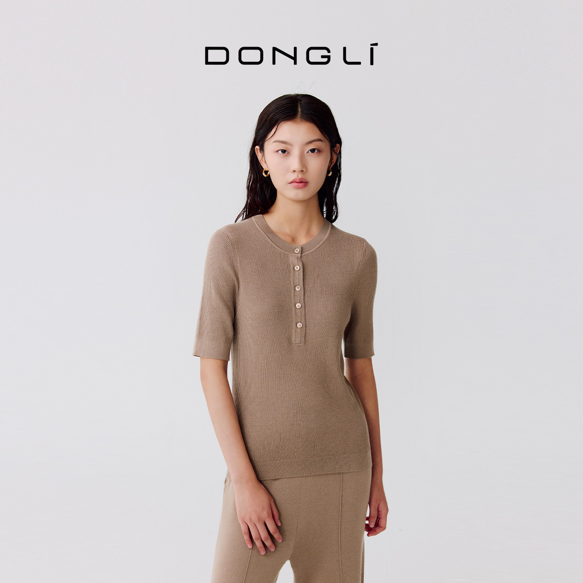 温柔 丝绒凉感圆领纯色短袖 海风 女士夏季 5209 精英亨利衫 东黎