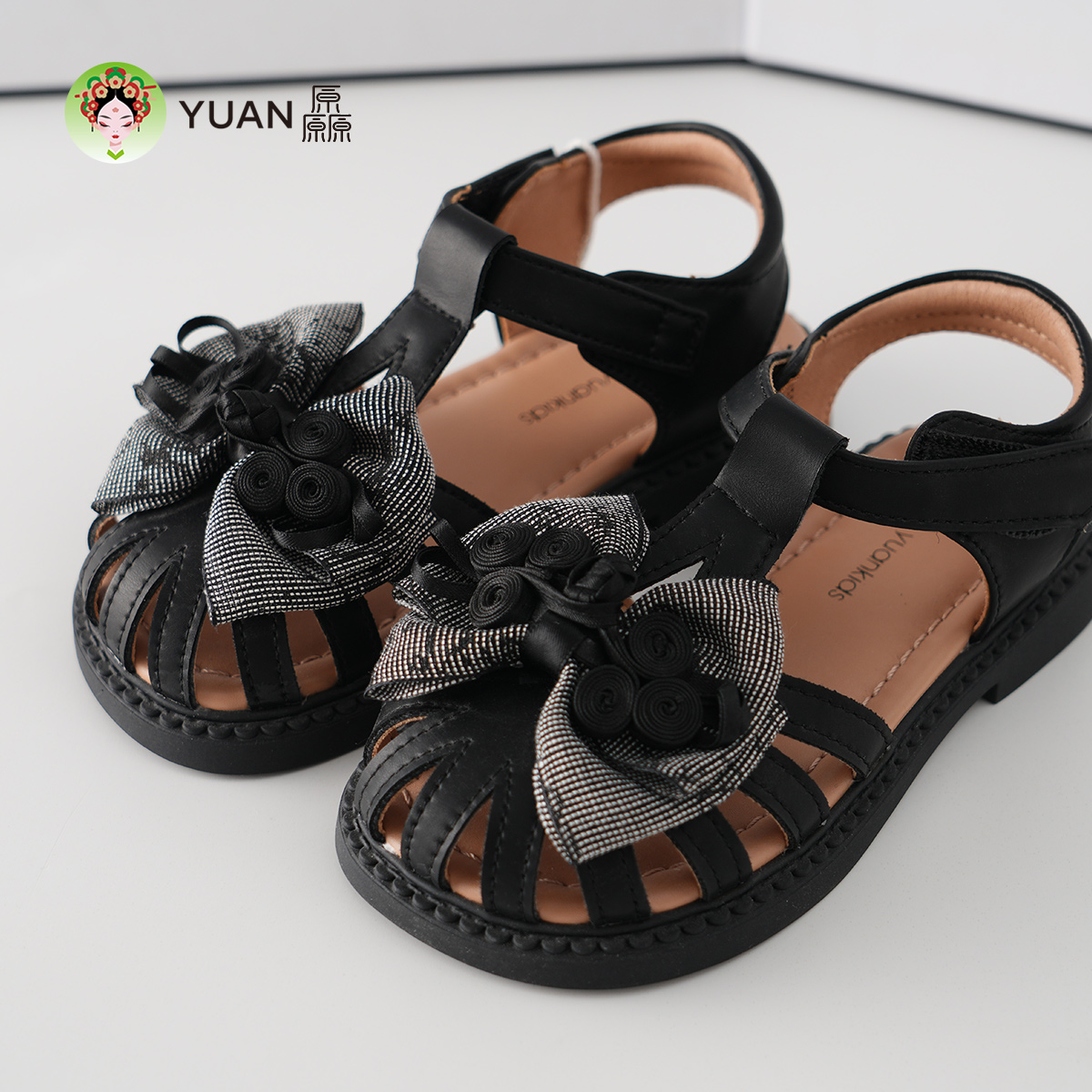 编织包头凉鞋 厵YUAN女童中大童凉鞋 儿童国风水墨新中式 新款 夏季