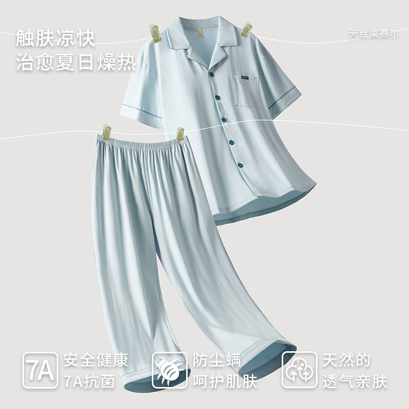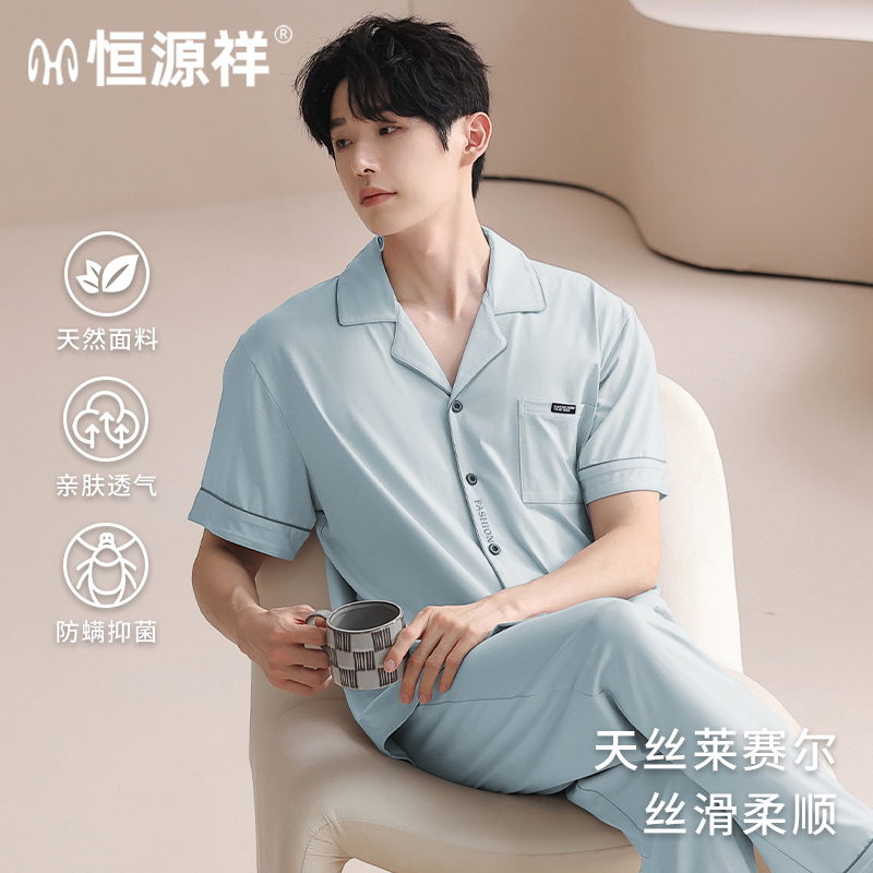 抗菌防螨亲肤透气家居服 翻领短袖 恒源祥天丝莱赛尔睡衣男夏季 薄款