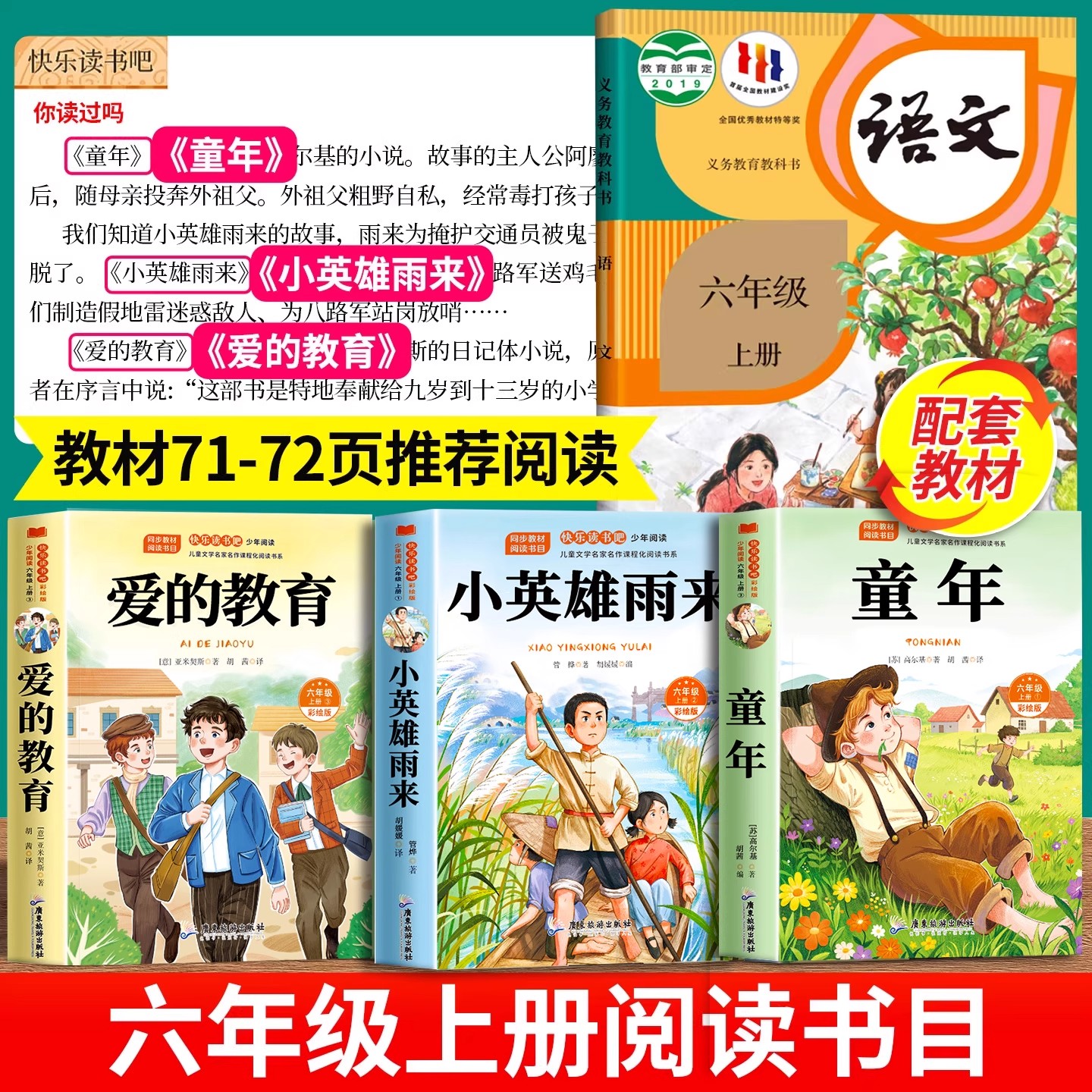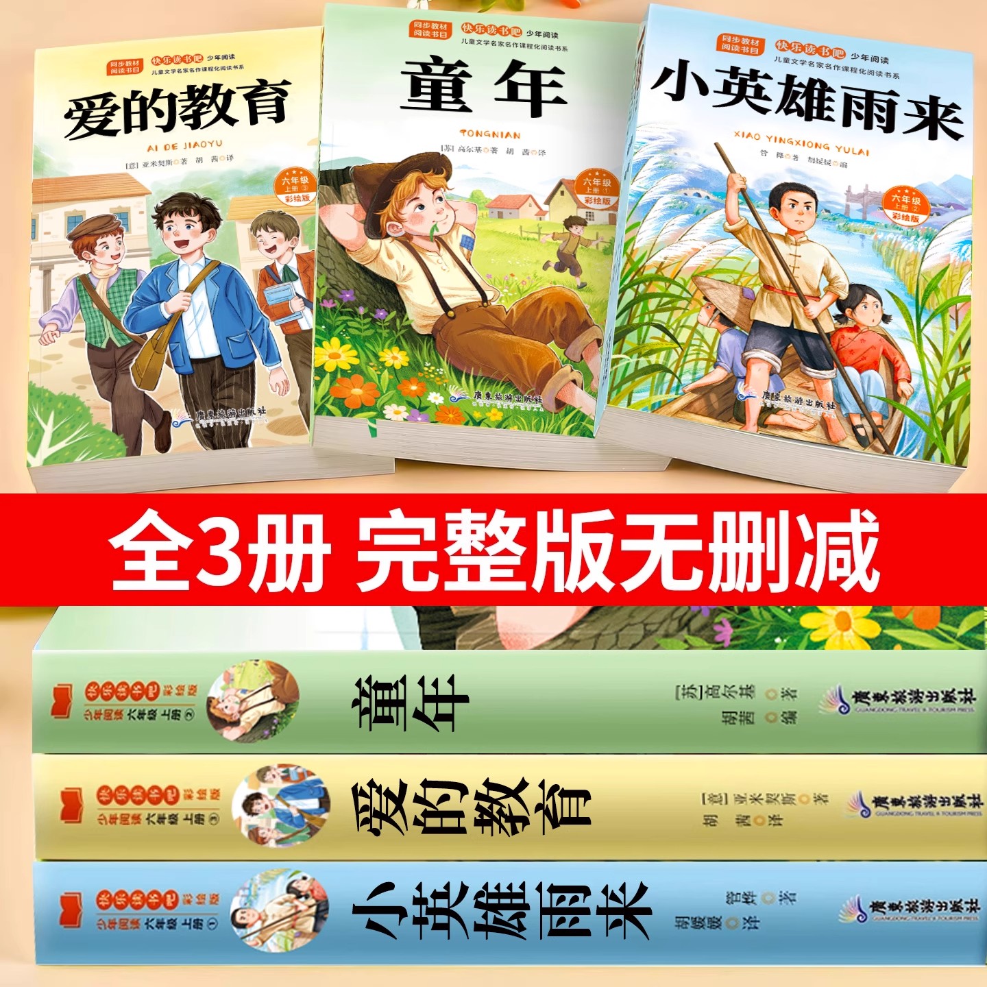 教育和小英雄雨来管桦原著老师推荐 课外书高尔基爱 经典 书目正版 快乐读书吧6上小学阅读书籍 全套3册 完整版 童年六年级上册必读