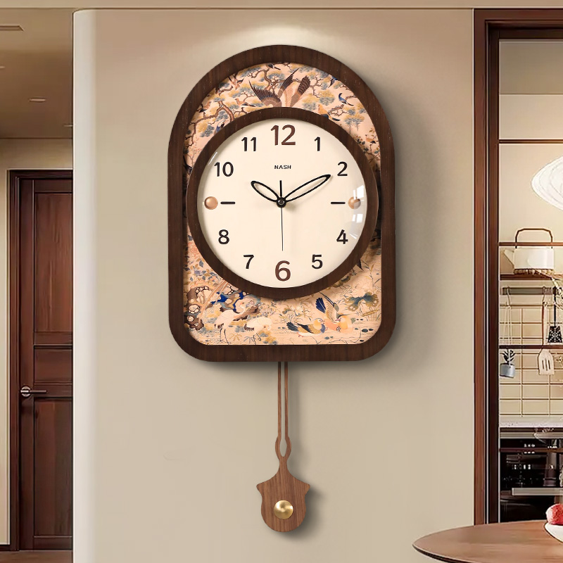 中古风轻奢挂钟客厅家用创意复古网红高级感2025新款 挂墙画时钟表
