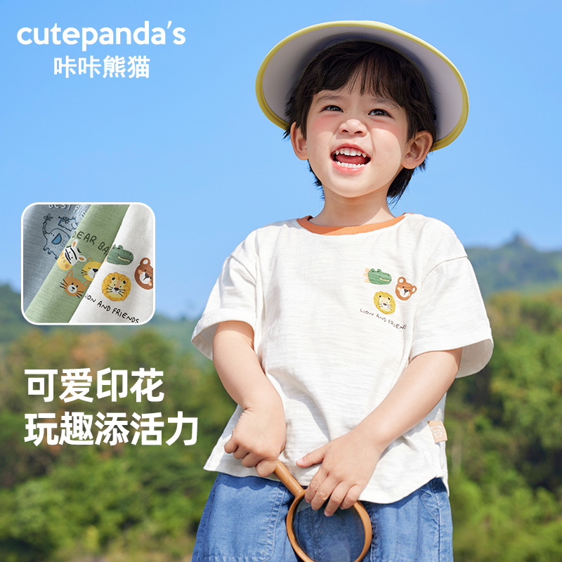 T恤夏装 咔咔熊猫男童短袖 婴儿纯棉衣服女宝宝儿童夏季 100%棉