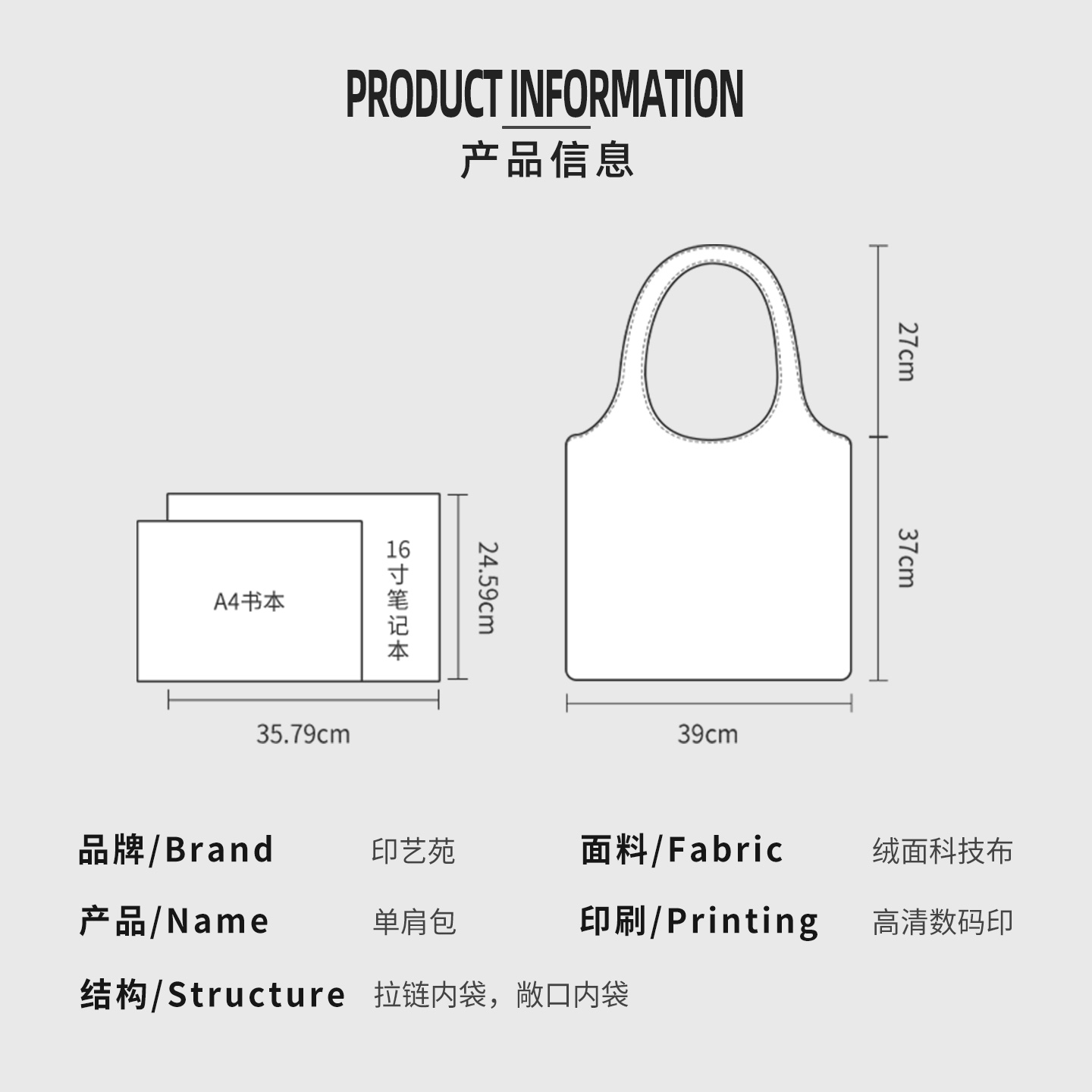 印艺苑原创波嬉态度帆布包2025新款 上班通勤大容量松弛感单肩袋