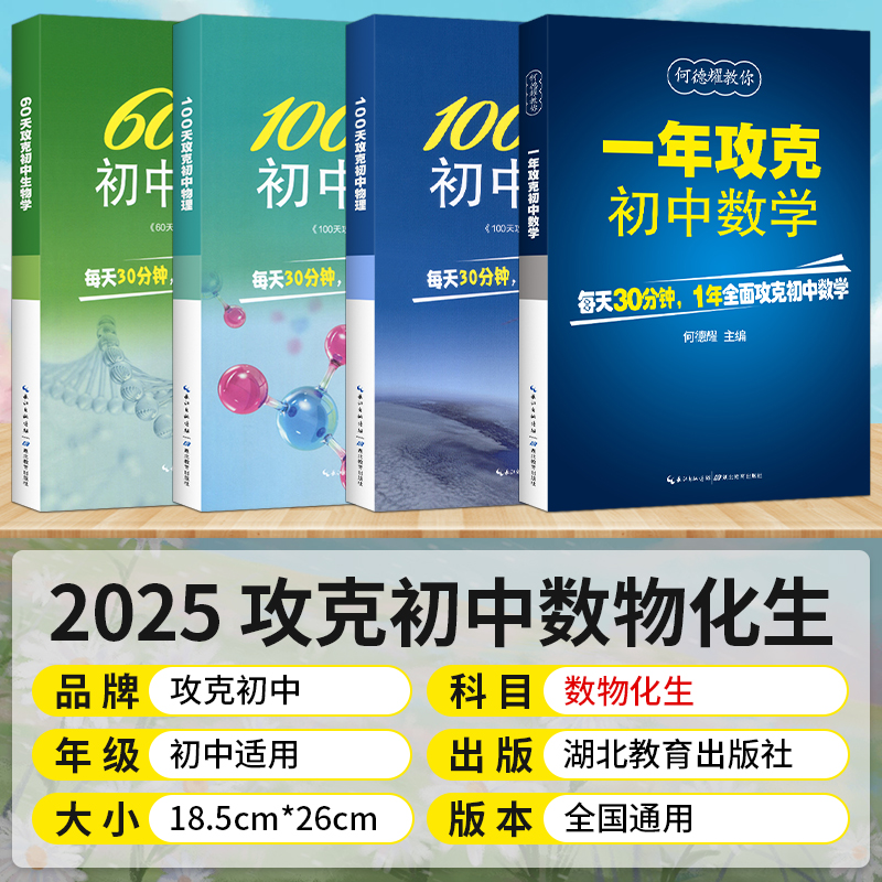 一年攻克初中数学60天攻克初中生物学100天攻克初中物理化学七八九年级重点难点压轴题中考真题知识清单教辅资料教案人教版 辅导书