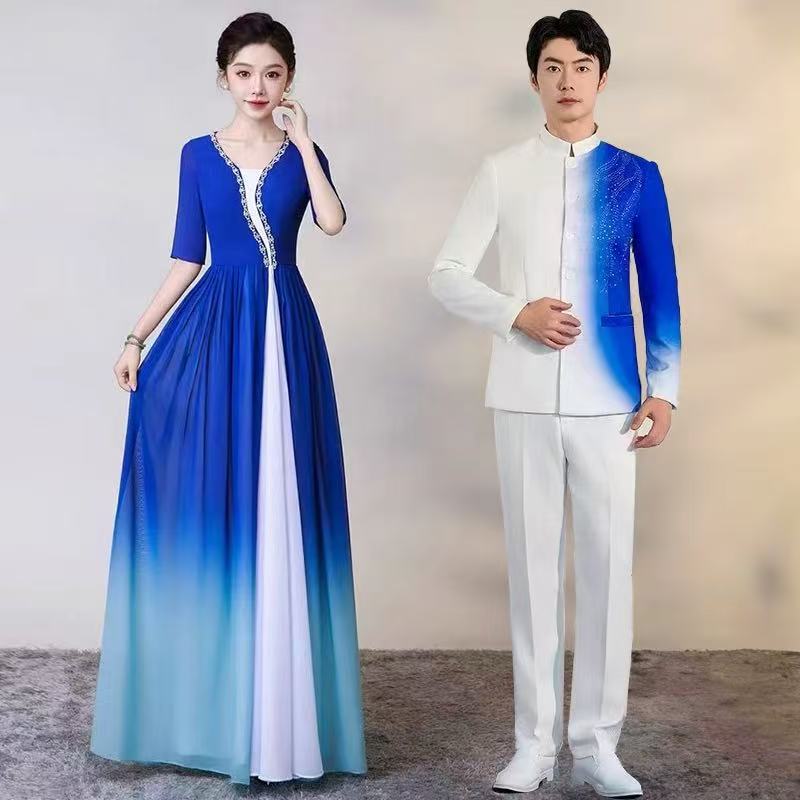 红歌大合唱演出比赛礼服长裙男女诗歌朗诵红歌合唱团合唱比赛服装