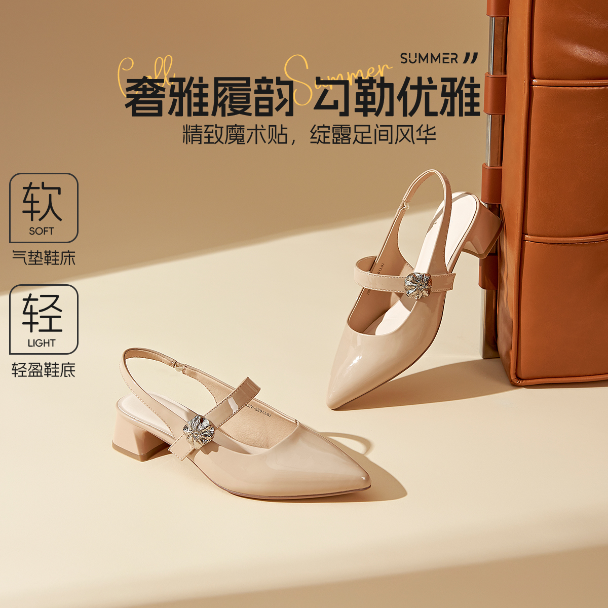 温柔晚风中粗跟尖头空鞋 女夏外穿2025新款 包头凉鞋 戈美其商场同款