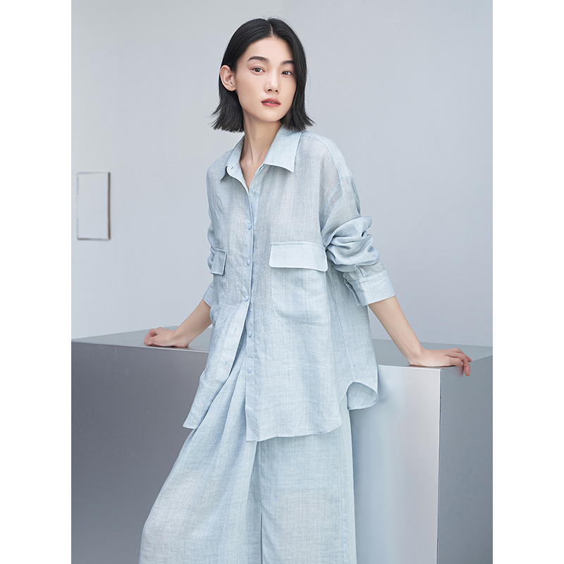 春季 气质正装 新款 女装 白衬衣工作服 竹纤维职业蓝色衬衫 短袖 女长袖