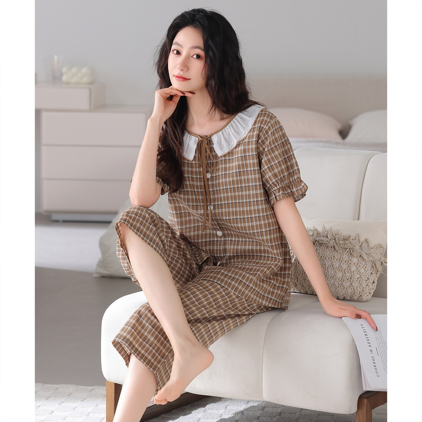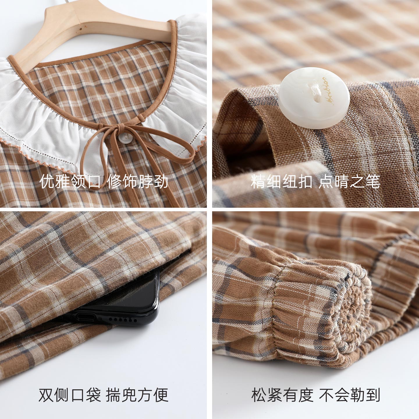 睡衣女春秋季 可外穿大码 柔软棉长袖 套装 家居服 格子长裤 迪士尼新款