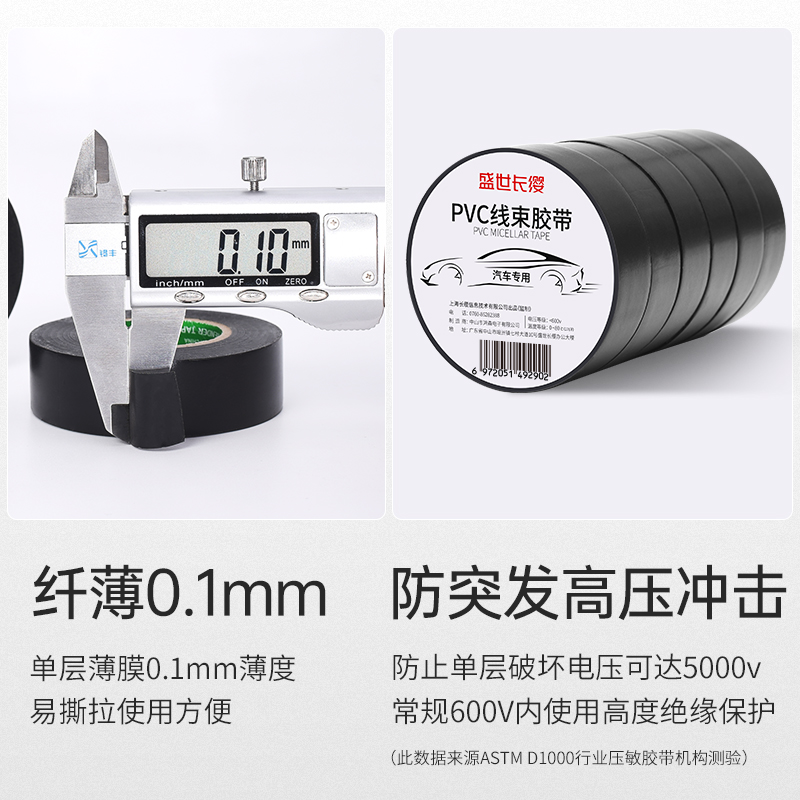 汽车线束超薄电气绝缘胶带高粘电胶布电工电线pvc防水耐高温黑色