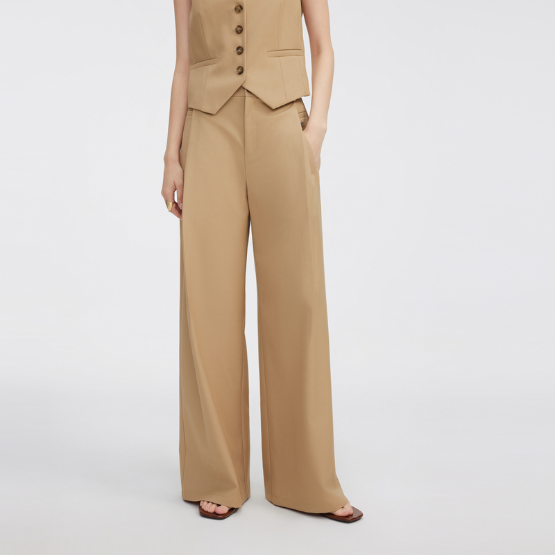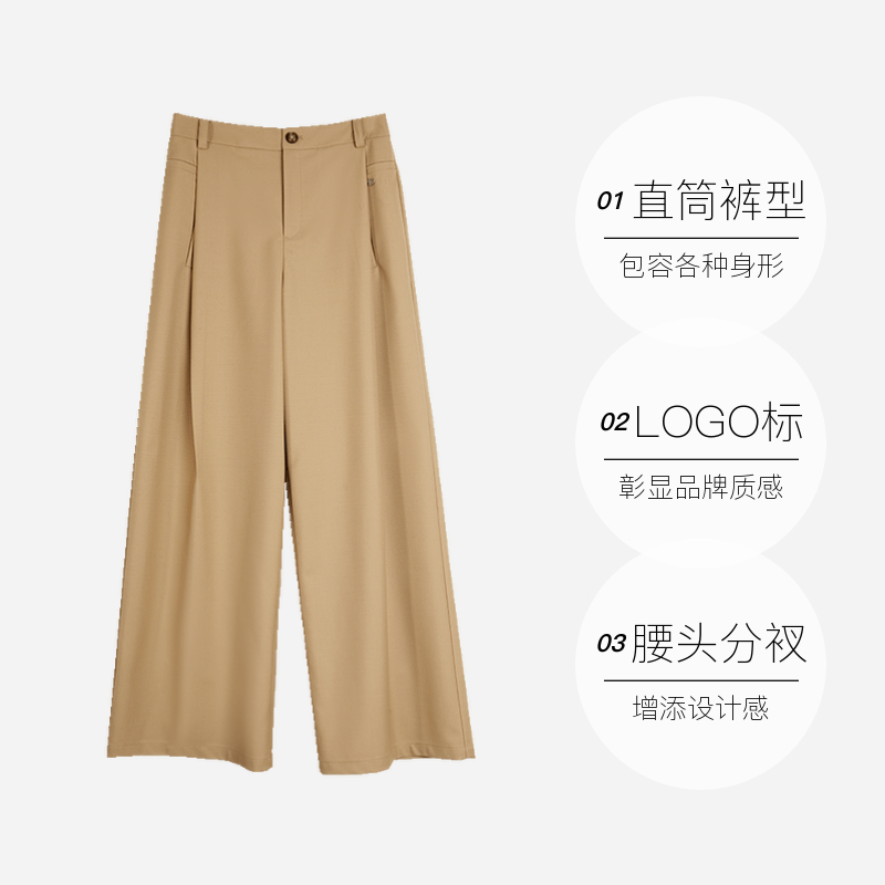 女2025春新款 裤 ELLE卡其色高腰休闲西装 显瘦小众气质西裤 自营