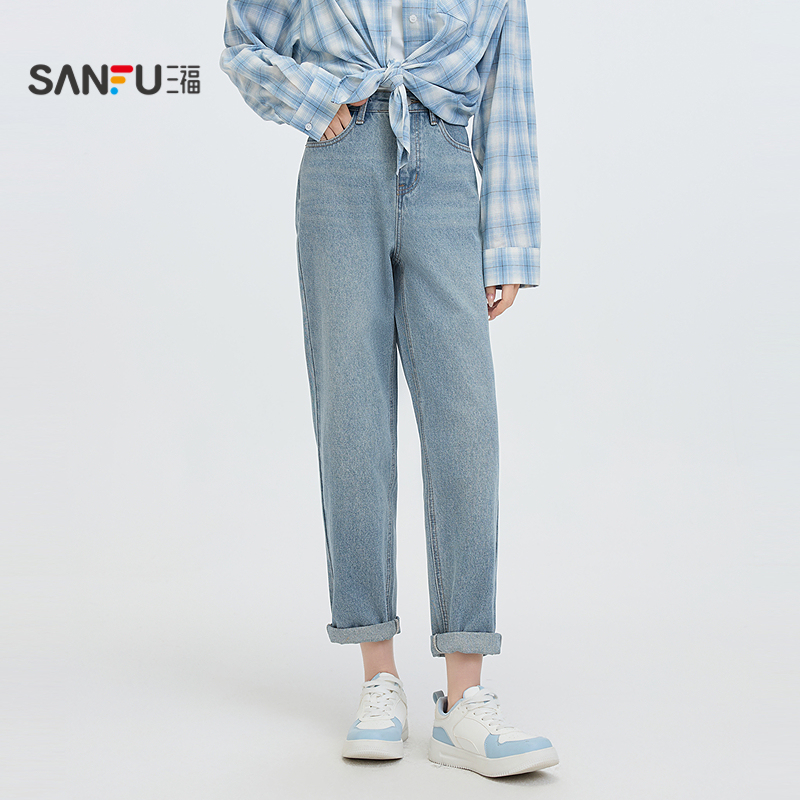 小个子哈伦裤 秋季 时尚 显瘦浅蓝裤 496219 三福牛仔裤 子女装 2025新款