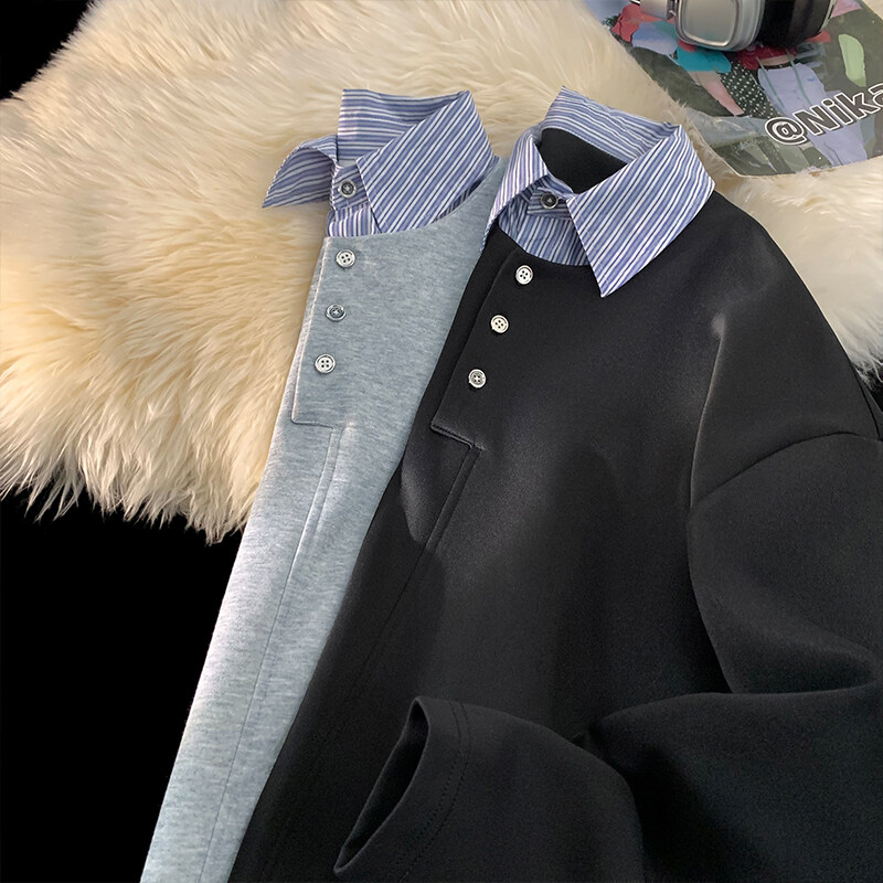 上衣162518719 学院风宽松长袖 安踏美式 复古翻领套头卫衣女士新款