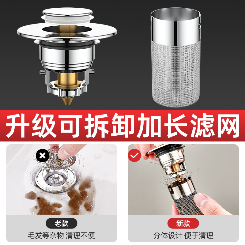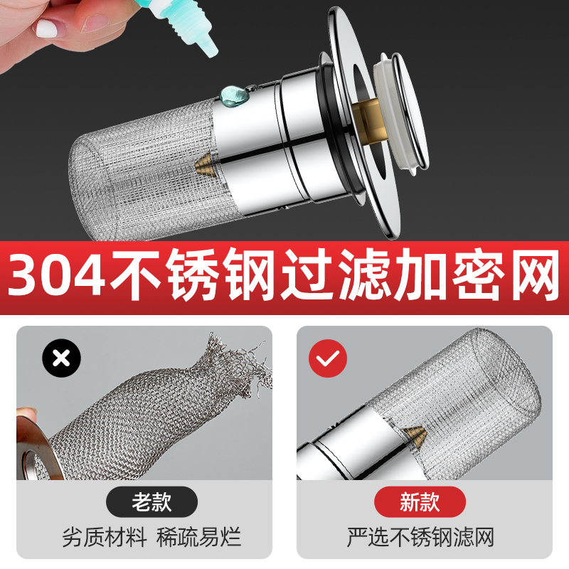 洗手盆漏水塞子脸盆通用弹跳芯下水器洗手池过滤网防堵按压式 神器